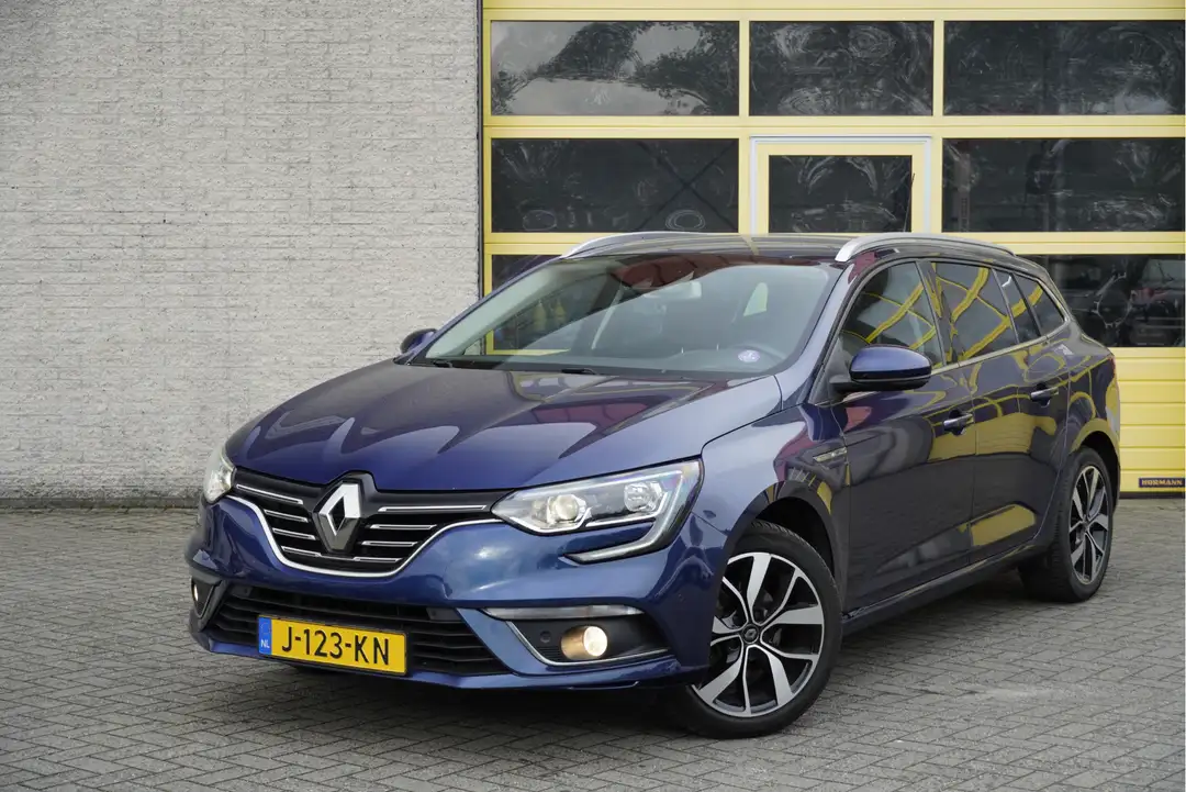 Renault Mégane Estate met de zeer luxe aanwezige opties als Lichtmetalen velgen | Led dagrijverlichting | Led achterlichten | Parkeersensoren | Keyless entry | Trekhaak | Achteruitrijcamera | Dashboard verlichting | Groot navigatiesysteem | App-Connect | Climate condor | Cruise control | Extra getint glas.