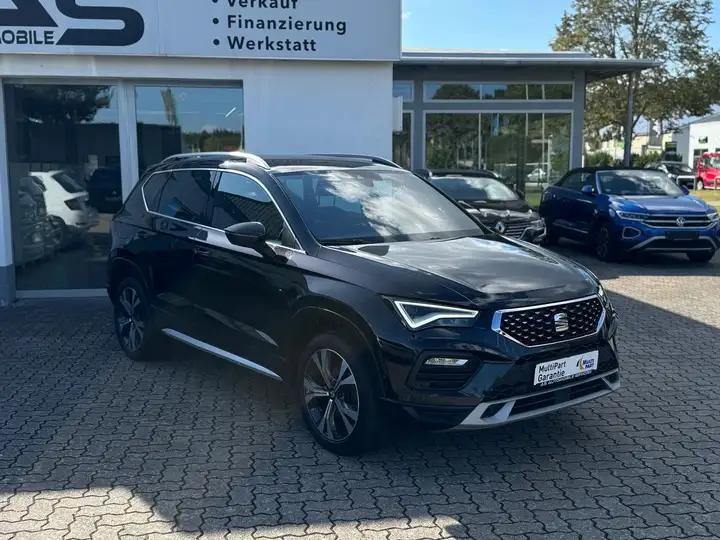 3. Bremsleuchte, Ablagetasche an Vordersitzlehnen, Airbag Beifahrerseite abschaltbar, Airbag Fahrer-/Beifahrerseite, Antriebs-Schlupfregelung (ASR), Außenspiegel elektr. verstell-, heiz- und anklappbar mit Spiegelabsenkung, Außenspiegel Wagenfarbe, Blinkleuchten LED in Außenspiegel integriert, Bluetooth-Schnittstelle mit Freisprecheinrichtung integriert, Bordcomputer, Brillenfach, Design-Paket Exterieur, silber, Doppeltonhorn, Einstiegsleisten beleuchtet, Elektron. Querdifferentialsperre (XDS), Fahrassistenz-System: Berganfahr-Assistent (Hill-Holder), Fahrassistenz-System: Fahrprofilauswahl (SEAT Drive Profile), Fahrassistenz-System: Müdigkeitserkennung, Fahrassistenz-System: Umfeldbeobachtungssystem (Front assist) mit City-Notbremsfunktion, Fensterheber elektrisch vorn + hinten mit Komfortschaltung, Gepäckraumabdeckung / Rollo, Handschuhfach beleuchtet, Heckleuchten LED mit dynamischem Blinklicht, Innenraumlicht-Paket LED, Isofix-Aufnahmen für Kindersitz, Karosserie: 5-türig, Klimaanlage Climatronic 2-Zonen, Knieairbag Fahrerseite, Kofferraumbeleuchtung, Kopf-Airbag-System, Lendenwirbelstütze Sitz vorn links, verstellbar, Lendenwirbelstütze Sitz vorn rechts, verstellbar, Licht- und Sicht-Paket, Mittelarmlehne hinten, Mittelkonsole vorn mit Mittelarmlehne, Becherhalter, Ablagebox und Luftausströmer hinten, Modellpflege, Motor 1,5 Ltr. - 110 kW 16V TSI ACT, Nebelscheinwerfer LED mit Abbiegelicht, Notrufsystem, Otto-Partikelfilter (OPF), Parkbremse elektrisch mit Auto-Hold-Funktion, Radstand 2638 mm, Reifen-Reparaturset, Reifenkontroll-Anzeige, Rückfahrkamera, Rücksitzlehne geteilt/klappbar (1/3-2/3), Schadstoffarm nach Abgasnorm Euro 6d, Schalt-/Wählhebelgriff Leder, Scheinwerfer Voll-LED, Schließ-/Startsystem Kessy, SEAT Media-System Plus, Seitenairbag, Seitenscheiben hinten und Heckscheibe abgedunkelt, Sitz vorn links höhenverstellbar, Sitz vorn rechts höhenverstellbar, Sonnenblende links mit Spiegel (beleuchtet), Sonnenblende rechts mit Spiegel (beleuchtet), Start/Stop-Anlage, Stau-/Ablagefach unter Sitz vorn links, Steckdose (12V-Anschluß) vorn, USB-Ladeanschlüsse (2-fach, Typ C) für 2.Sitzreihe, Verzurrösen Koffer-/Laderaum, Wärmeschutzverglasung