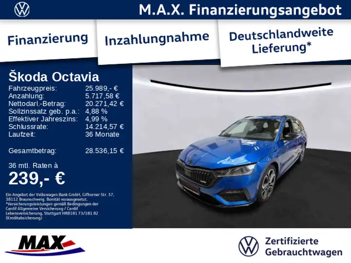 - Skoda Octavia Combi RS iV 1.4 eTSI MATRIX+PANO+NAV+HUD