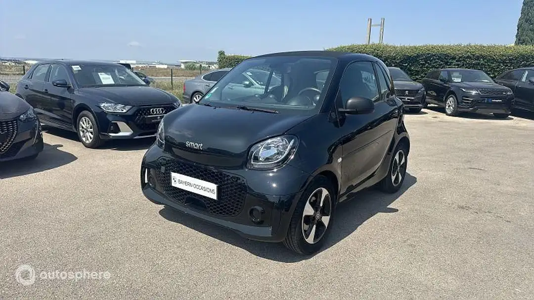 Marque: Smart Modèle: Fortwo Coupé Version: Electrique 82ch edition one Energie: Electrique Année: 2020 Couleur: Noir Carrosserie: Berline Boite: Automatique Portes: 3 Places: 2 Cylindrée: 0 Garantie: E-quality AUTOSPHERE 12 mois Equipements: 2 Haut parleurs, ABS, Accoudoir central AV avec rangement, Aide au démarrage en côte, Airbag conducteur, Airbag genoux, Airbag passager déconnectable, Airbags latéraux avant, Antidémarrage électronique, Antipatinage, Bacs de portes avant, Boite à gants fermée, Caméra de recul, Capteur de luminosité, Capteur de pluie, Clim automatique, Coffre avec fermeture à distance, Commandes vocales, Contrôle élect. de la pression des pneus, Diffuseur AR noir, EBD, Eclairage d'ambiance, Ecran multifonction couleur, Ecran tactile, ESP, Essuie-glace arrière, Feux de jour à LED, Filets de coffre, Filtre à Pollen, Fonction MP3, Freinage automatique d'urgence, GPS Cartographique, Inserts de tableau de bord cuir, Jantes Alu, Kit mains-libres Bluetooth, Lampe de coffre, Lampes de lecture à l'avant, Limiteur de vitesse, Lunette AR dégivrante, Miroir de courtoisie conducteur, Miroir de courtoisie passager, Ordinateur de bord, Phares antibrouillard, Phares avant LED, Poches d'aumonières, Pommeau de levier vitesse en cuir, Porte-gobelets avant, Préparation Isofix, Prise 12V, Prise auxiliaire de connexion audio, Prise USB, Radar de stationnement AR, Radio, Radio numérique DAB, Régulateur de vitesse, Rétroviseur intérieur électrochrome, Rétroviseurs dégivrants, Rétroviseurs électriques, Services connectés, Siège conducteur chauffant, Siège conducteur réglable en hauteur, Siège passager chauffant, Siège passager rabattable, Sticker, Système d'assistance au stationnement AR, Tablette cache bagages, Témoin de bouclage des ceintures AV, Température extérieure, TMC, Toit panoramique en verre, Velum rang 1, Verrouillage auto. des portes en roulant, Verrouillage centralisé à distance, Verrouillage centralisé des portes, Vitres avant électriques, Volant cuir, Volant multifonction, Volant réglable en hauteur
