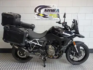 De Suzuki V-Strom 800 uit 2025 is een complete motor die klaarstaat voor elk avontuur, of je nu lange afstanden over de snelweg aflegt of uitdagende binnenwegen verkent. Met 62 kW vermogen biedt hij een krachtige maar goed beheersbare rijervaring. Dit model komt met het Adventurepakket, valbeugels, handkappen en handvatverwarming (Valbeugels en handkappen niet op foto, maar zijn inbegrepen). Daarmee blijf je beschermd en comfortabel, ook onder minder gunstige weersomstandigheden. Daarbovenop zit er een Mivv uitlaat op de motor.