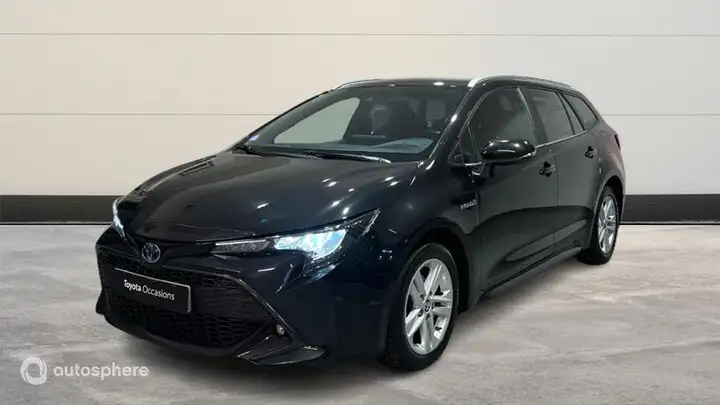 Marque: Toyota                Modèle: Corolla Touring Sports                Version: 122h Dynamic Business + Stage Hybrid Academy MY21                Energie: Hybride                Année: 2021                Couleur: Noir métallisé                Carrosserie: Break                Boite: Automatique                Portes: 5                Places: 5                Cylindrée: 1798                Garantie: Label Toyota Occasions 36 mois TFR                Equipements: 6 Haut parleurs, ABS, Accoudoir arrière, Accoudoir central AV avec rangement, AFIL, Aide au démarrage en côte, Airbag conducteur, Airbag genoux, Airbag passager déconnectable, Airbags latéraux avant, Airbags rideaux AV et AR, Antidémarrage électronique, Antipatinage, Appel d'Urgence Localisé, Assistance de maintien de trajectoire, Banquette 60/40, Banquette AR rabattable, Boite à gants fermée, Caméra de recul, Capteur de luminosité, Capteur de pluie, Clim automatique bi-zones, Commandes du système audio au volant, Commandes vocales, Contrôle de Traction, Contrôle electronique de stabilité, Démarrage sans clé, Détecteur de sous-gonflage, EBD, Ecran multifonction couleur, Ecran tactile, ESP, Feux arrière à LED, Feux de jour à LED, Filtre à particules, Filtre à Pollen, Fixations Isofix aux places arrières, Follow me home, Fonction appel d'urgence, Fonction MP3, Freinage automatique d'urgence, GPS Cartographique, Jantes Alu, Kit mains-libres Bluetooth, Limiteur de vitesse, Ordinateur de bord, Ouverture des vitres séquentielle, Phares antibrouillard, Phares avant LED, Plancher de coffre mobile, Poignées ton carrosserie, Pommeau de levier vitesse en cuir, Prise auxiliaire de connexion audio, Prise USB, Radar de stationnement AR, Radar de stationnement AV, Radio, Reconnaissance panneaux de signalisation, Régulateur de vitesse adaptatif, Rétroviseur intérieur électrochrome, Rétroviseurs dégivrants, Rétroviseurs électriques, Rétroviseurs rabattables automatique, Rétroviseurs rabattables électriquement, Services connectés, Siège cond. avec réglage lombaire électr, Siège conducteur avec réglage lombaire, Siège conducteur chauffant, Siège conducteur réglable en hauteur, Siège passager chauffant, Siège passager réglable en hauteur, Syst. intelligent gestion des cylindres, Système d'accès sans clé, Système d'éclairage intelligent, Système de détection de somnolence, Système de prévention des collisions, Tissu Noir, Verrouillage centralisé à distance, Vitres arrière électriques, Vitres avant électriques, Volant cuir, Volant multifonction, Volant réglable en profondeur et hauteur, Noir métallisé, Roue de secours type galette