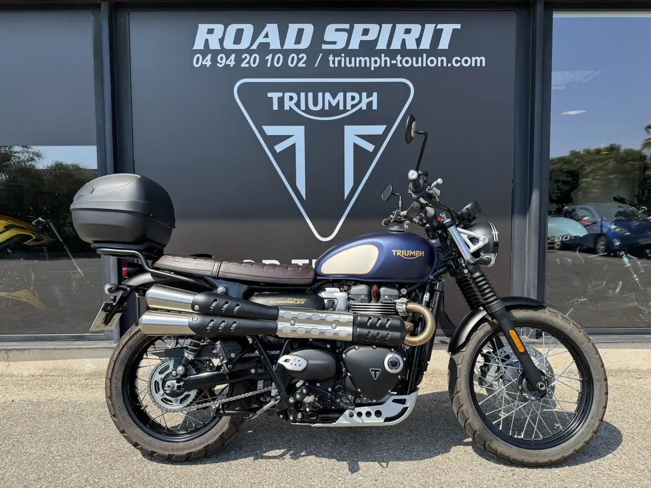Triumph Road Spirit Concessionnaire Exclusif Triumph Toulon Caractristiques - Marque : Triumph - Modle : Street Scrambler Goldline - Mise en circulation : 19/01/202 - Kilomtrage : 1 193 km - Puissance fiscale : 9 CV Description du vhicule Nous vous proposons une superbe Triumph Street Scrambler 900 Goldline, vendue et entretenue dans notre concession. Moto en tat irrprochable, avec un suivi complet et entirement jour de rvision ainsi que des consommables. Une dition spciale rare, au style iconique et aux finitions premium, idale pour les amateurs dauthenticit et dexclusivit. La moto est vendue avec : - Carnet dentretien - Factures - Manuel du propritaire - Double des cls quipements & Accessoires - Sabot moteur aluminium Triumph - Sacoche latrale Triumph - Top case Triumph - Selle plate marron Triumph - Entourage de feu aluminium Triumph - Protection de rservoir Triumph - Barre de guidon + mousse marron Triumph - Bquille centrale - Badges carter dembrayage + alternateur Triumph Nos engagements : - Une garantie 12 mois - Une expertise complte (Malgr toute notre attention, des erreurs peuvent se glisser dans nos annonces. Contactez Triumph Toulon pour plus dinformations.) Services proposs : - Reprise de votre moto - Financement partiel ou intgral - Livraison dans toute la France