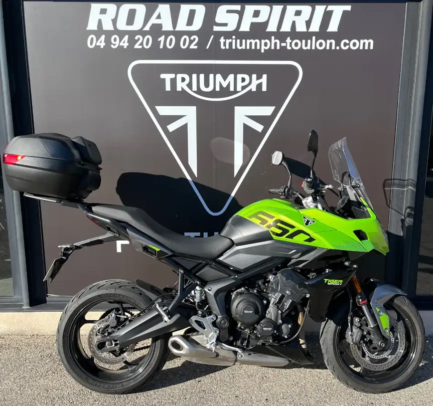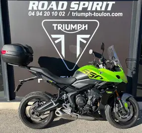 Triumph Road Spirit Concessionnaire Exclusif Triumph Toulon Caractristiques - Marque : Triumph - Modle : Tiger Sport 660 (A2) - Mise en circulation : 22/03/2025 - Kilomtrage : 6 731 km - Puissance fiscale : 7 CV - Moto dj bride A2 (dbridage possible) Description du vhicule Nous vous proposons une trs jolie Triumph Tiger Sport 660 achete et entretenue chez nous, prsente dans un excellent tat gnral. Idale pour les permis A2 grce son bridage dj install, elle peut galement tre remise en version full pour voluer avec vous. Moto entretenue avec soin, disposant dun historique clair et complet. Un trail routier polyvalent, conomique, confortable et trs agrable au quotidien comme en week-end. La moto est vendue avec : - Carnet dentretien jour - Factures - Manuel du propritaire - Double des cls quipements & Accessoires - Top-case Triumph + dosseret - Sabot moteur - Poigne de bridage - Protections de carters GB Racing Nos engagements : - Garantie 12 mois - Expertise complte Malgr toute notre attention, des erreurs peuvent se glisser dans nos annonces. Merci de contacter Triumph Toulon pour plus dinformations. Services proposs : - Reprise de votre moto - Financement partiel ou intgral - Livraison dans toute la France