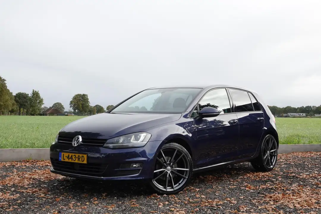Volkswagen Golf 7 Highline welke goed is onderhouden, uitgerust is met parkeersensoren voor + achter, Stoelverwarming, nette Alcantara bekleding, Getinte ramen en 19 inch lichtmetalen velgen!