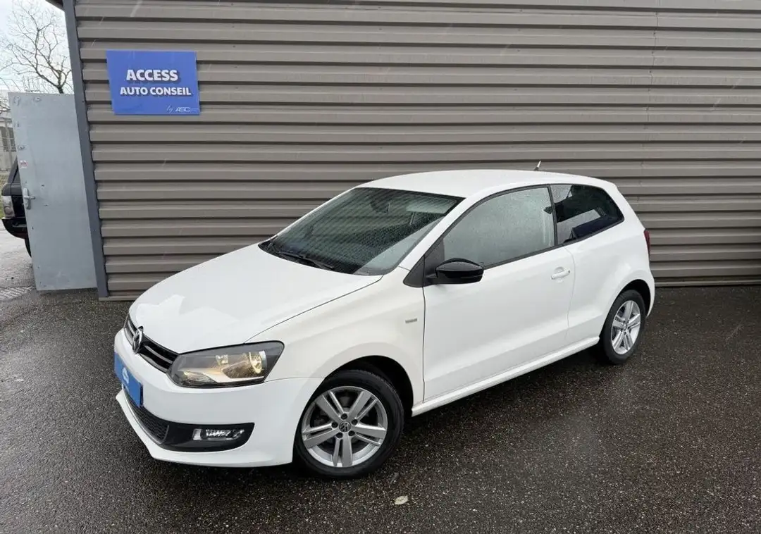 Volkswagen Polo (5) 1.2 60 Match, berline, blanc, 4 cv, 3 portes, première mise en circulation le 06/10/2012, garantie : 12 mois.