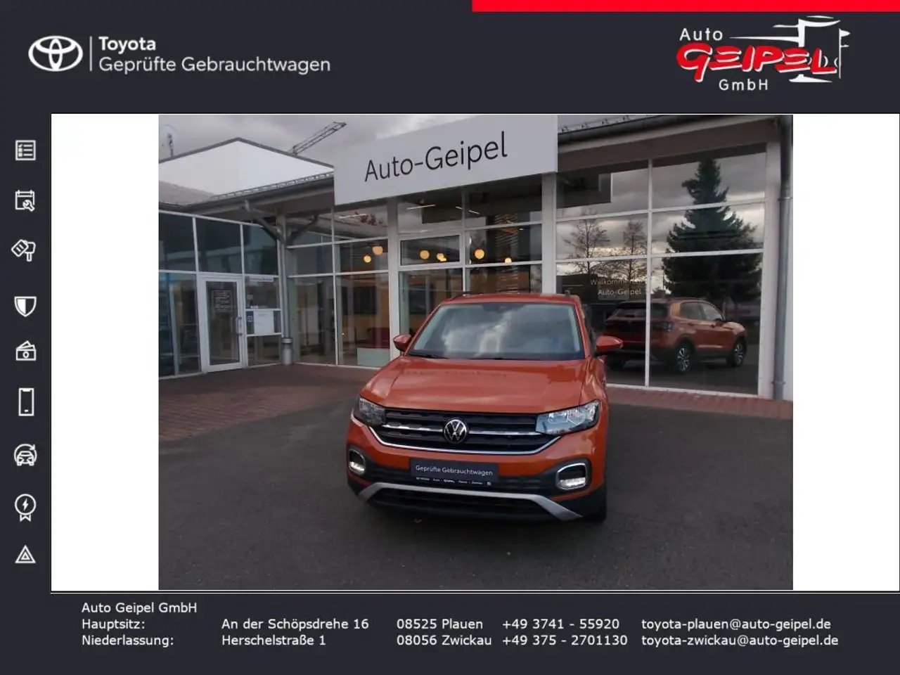 Auto Geipel ist Ihr Toyota und GR Vertragshändler in Plauen und Zwickau. Bereits seit 1991 bieten wir am Standort Plauen als Toyota Vertragshändler Neu- und Gebrauchtwagen sowie Zubehör an. Seit 2020 ergänzten wir als Auto Geipel GmbH das Angebot bieten als offizieller Vertragshändler GR Sportfahrzeuge an. Tippfehler,Irrtümer, Datenübertragungsfehler vorbehalten.