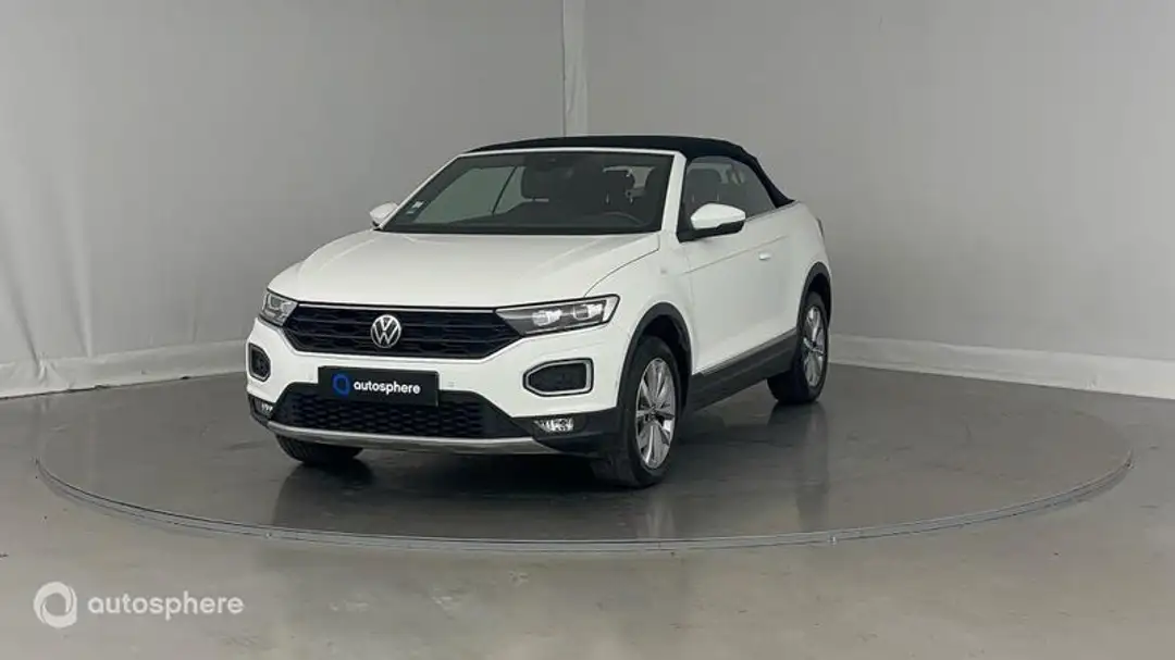 Marque: Volkswagen Modèle: T-Roc Cabriolet Version: 1.0 TSI 110ch Style Energie: Essence Année: 2020 Couleur: Blanc Pur, capote noire Carrosserie: Cabriolet Boite: Manuelle Portes: 2 Places: 4 Cylindrée: 999 Garantie: Nissan Intelligence Choice 12 mois Equipements: 6 Haut parleurs, ABS, Accoudoir central AV avec rangement, AFIL, Aide au démarrage en côte, Aide au freinage d'urgence, Airbag conducteur, Airbag passager déconnectable, Airbags latéraux avant, Antidémarrage électronique, Antipatinage, Arrêt et redémarrage auto. du moteur, Assistance de maintien de trajectoire, Bacs de portes avant, Blocage électronique du différentiel, Boite à gants fermée, Boucliers AV et AR couleur caisse, Buses de lave-glace chauffantes, Caméra de recul, Capote électrique, Capteur de luminosité, Capteur de pluie, Ceintures avant ajustables en hauteur, Clim automatique bi-zones, Compte tours, Contrôle de couple en courbe, Démarrage sans clé, Diffuseur AR noir, Dispositif freinage automatique, Dossier de sièges AR rabattables, EBD, Eclairage au sol, Eclairage d'ambiance, Ecran multifonction couleur, Ecran tactile, ESP, Feux arrière à LED, Filtre à Pollen, Fixations Isofix aux places arrières, Follow me home, Fonction MP3, Freinage automatique d'urgence, GPS Cartographique, Guidage pour manoeuvre de stationnement, Inserts de tableau de bord métal, Interface Media, Jantes Alu, Kit mains-libres Bluetooth, Lampe de coffre, Lecteur carte SD, Miroir de courtoisie conducteur éclairé, Miroir de courtoisie passager éclairé, Ordinateur de bord, Pare-brise thermique, Phares de route adaptatifs, Phares halogènes, Poignées ton carrosserie, Prise 12V, Prise USB, Radar de distance, Radar de stationnement AR, Radar de stationnement AV, Radio, Radio numérique DAB, Reconnaissance panneaux de signalisation, Régulateur de vitesse adaptatif, Rétroviseur intérieur électrochrome, Rétroviseurs dégivrants, Rétroviseurs électriques, Rétroviseurs ext. indexés à la marche AR, Rétroviseurs rabattables électriquement, Services connectés, Siège conducteur chauffant, Siège conducteur réglable en hauteur, Siège passager chauffant, Siège passager réglable en hauteur, Système avancé de détection d'obstacles, Système d'accès sans clé, Système de détection de somnolence, Système de prévention des collisions, Témoin de bouclage des ceintures AV, Témoin de perte de pression pneumatique, Température extérieure, Verrouillage centralisé des portes, Vert Cactus, capote tissu noire, Volant cuir, Volant multifonction, Blanc Pur, capote noire