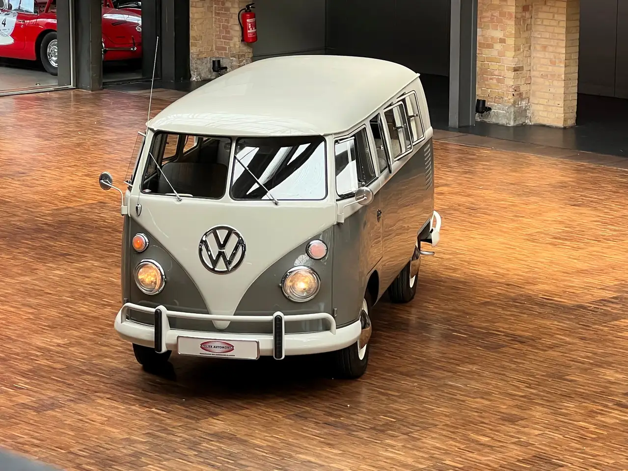 Dieser T1 Bus 7-Sitzer wurde am 30.08.1963 produziert und am 05.09.1963 nach Boston in die USA ausgeliefert. Die Zweifarbenlackierung wurde in mausgrau L325 und perlweiß L87 gewählt. Die Innenausstattung wirkt auf den ersten Blick wie Stoffsitze, besteht aber tatsächlich aus hochwertigem basaltgrauen Kunstleder, wie man es heute kaum noch antrifft. Kunstleder galt seinerzeit nicht als billiger Echtlederersatz, sondern als pflegeleichtes, abwaschbares Leder, für das keine Kühe sterben mussten. Heute würden dies einige Hersteller als vegane Ausstattung verkaufen. Am 26.08.1978 ging der Bus in seine zweiten Hände, an einen Mr. Roller in Torrance, Kalifornien. 2014 wurde das sehr gut und original erhaltene Fahrzeug zurück nach Deutschland geholt, technisch völlig neu aufgearbeitet und der untere mausgraue Lack erneuert. Bei der Hauptuntersuchung am 15.04.2015 durch den TÜV Nord in Duisburg wurde eine Laufleistung von 73.196 Meilen attestiert. Bei der HU am 17.06. 2020 bei der Dekra waren es 73.901 Meilen. 2022 bekam das Auto deutsche Papiere und wurde auf einen Möbelfabrikanten im Breisgau zugelassen. Dieser hatte nun auch die perlweißen Bereiche der Karosserie neu lackieren lassen. Die Schichtdicke des Lacks ist rundherum zwischen 350 und 700 Mikrometer, entspricht also einer einmaligen Neulackierung. Kaum zu glauben, aber die Sitzbezüge, Seiten-, Dachhimmel- und Bodenverkleidungen sind gänzlich original erhalten! Ebenso die vorderen statischen Zweipunkt-Sicherheitsgurte, die in den USA bereits Pflicht waren. Der Sammler aus dem Breisgau hat bei uns ein anderes Fahrzeug gekauft und uns daher diesen sensationell gut erhaltenen VW Bus zum Verkauf überlassen. Das originale Meilentachometer wurde unmittelbar bevor das Auto zu uns kam, bei Meilenstand 73.974, durch ein Kilometertachometer ersetzt, welches zu diesem Zeitpunkt auf Null eingestellt wurde. Die gesamte Laufleistung beläuft sich heute auf 119.099 Kilometer. Das alte Meilentachometer ist noch vorhanden. Am 23.03.1963 präsentierten The Beach Boys den Song „Survin‘‘ USA“ – irgendwie passend zu diesem 1963er VW T1 Bus.