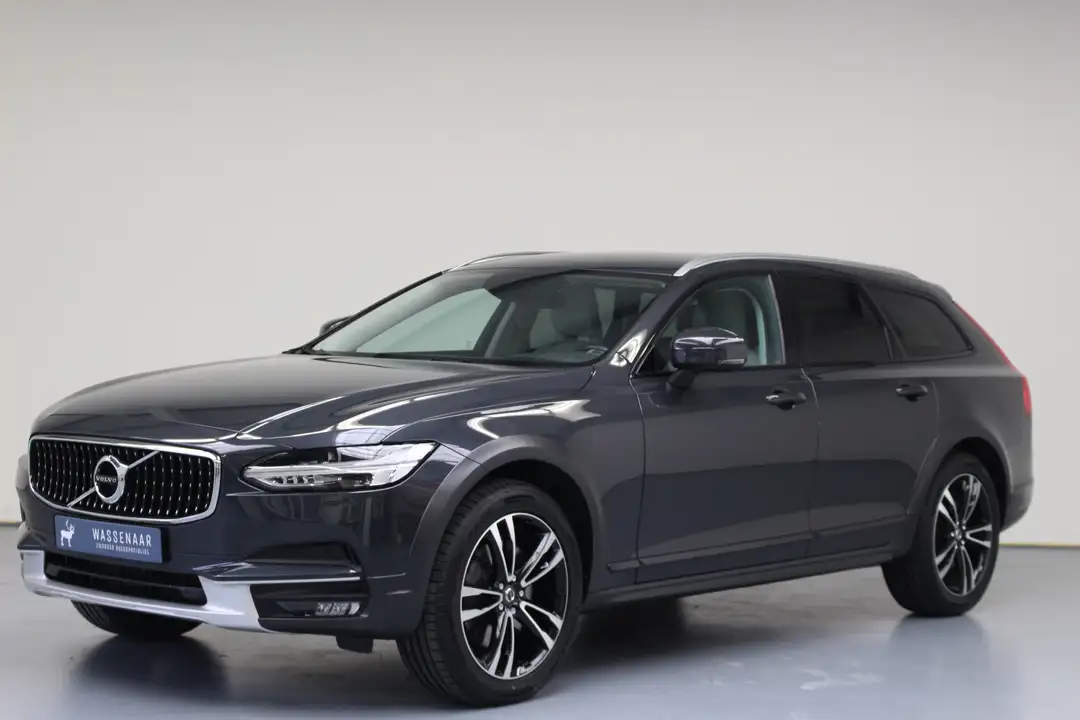 Volvo V90 Cross Country T5 254pk Geartronic Plus AWD. Deze complete Volvo V90 Cross Country is o.a. voorzien van: Volledig Lederen bekleding, 19 inch Lichtmetalen velgen 6-Dubbel Spaaks Tech Matt Black / Diamond Cut voorzien van zomerbanden, Buitenspiegels met LED knipperlichten en elektrisch inklapbaar, Automatisch dimmende binnenspiegel in frameless design, Elektrisch bedienbare kindersloten op achterportieren, Elektrisch bedienbare ramen voor en achter, Regensensor, Voorstoelen verwarmd, Verwarmbare zittingen buitenste zitplaatsen achter, Isofix bevestigingspunten achterbank, Extra getint glas achterportieren en achterruit, Parkeerverwarming met timer, 12,3" digitaal instrumentenpaneel, LED mistlampen met bochtverlichting, Trekhaak 13-polig Elektrisch wegklapbaar, Park Assist voor en achter en Drive Mode Settings V90 Cross Country: 5 instellingen om de auto naar uw wensen aan te passen: ECO, Comfort, Dynamic, Individual en Off-Road .