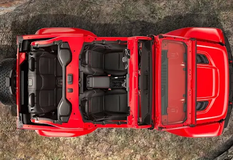 - Une modularité sans équivalent : toit rigide ou souple, portes amovibles, pare-brise rabattable… chaque élément de la Jeep Wrangler peut être adapté selon les envies pour profiter d’une expérience de conduite unique.